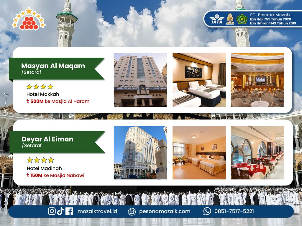 - TIKET PESAWAT EKONOMI PP MAKAN 3X SEHARI MENU INDONESIA, AIR ZAM-ZAM 5 LITER VISA UMRAH, ASURANSI PERJALANAN MUTHAWWIF YANG BERPENGALAMAN BUS AC SELAMA PERJALANAN, KERETA CEPAT AL-HARAMAIN